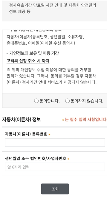 가장 간단한 건 한국교통안전공단 사이버검사소 홈페이지에 접속해서 차량번호랑 주민등록번호 앞자리만 입력하면 돼요.