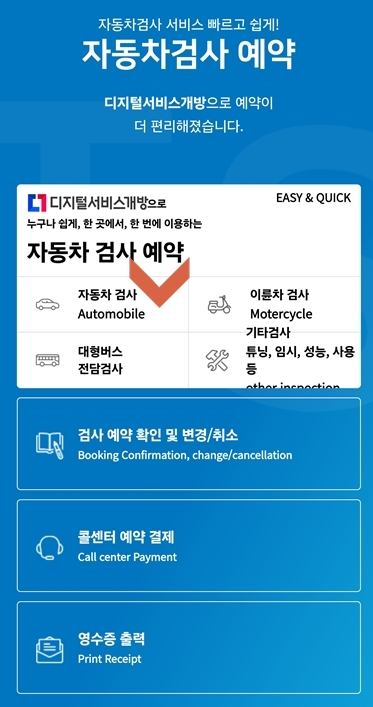 예약은 사이버검사소 홈페이지에서 하시면 돼요.