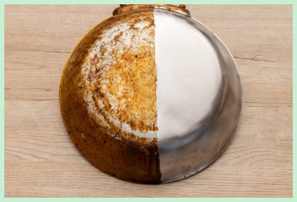 끓이면서 나는 거품과 탄 냄새가 좀 신경 쓰일 수 있지만, 탄 자국이 놀라울 정도로 잘 제거됩니다.
