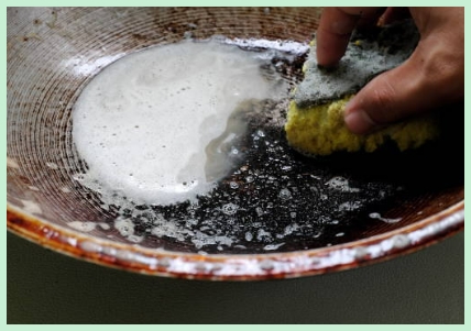 - 나무 주걱이나 부드러운 수세미로 문지릅니다.
