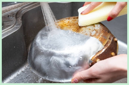 탄 냄비 청소의 가장 기본적인 방법은 뜨거운 물과 세제를 활용하는 겁니다.